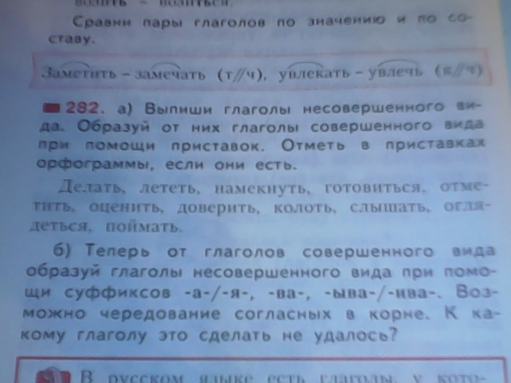 Сделать , слетать , приготовиться , исколоть, услышать ,