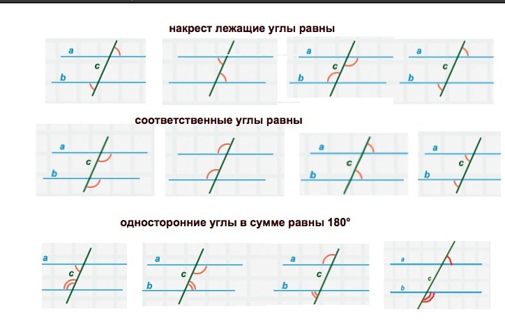 Две параллельные прямые пересекает третья прямая (a∥b, c пересекает a и b).