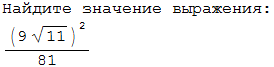 в скобках 9 * на квадратный корень из числа 11 скобка закрывается во второй степени разделить на 81