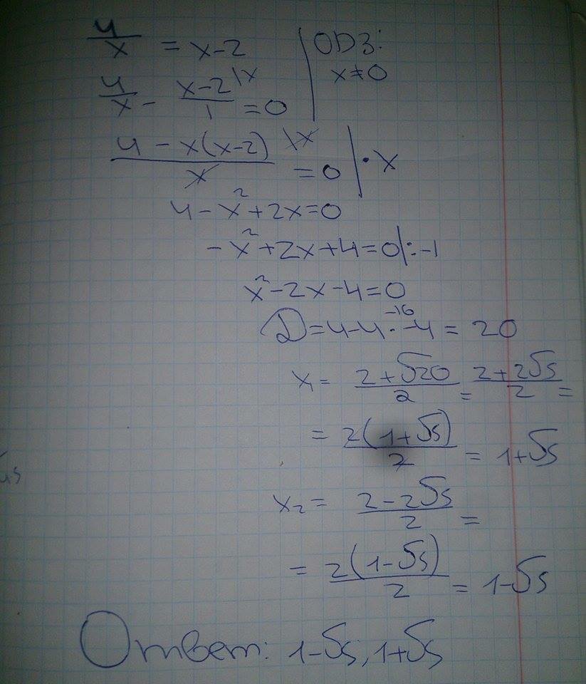 решите уравнение 4/х=х-2