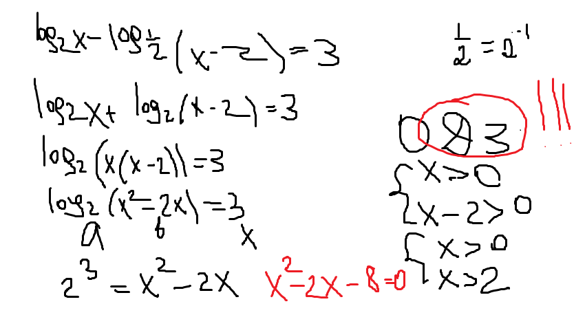 x1=1+3=4 x2=1-3=-2 не подходит ОДЗ х>0 x>2
