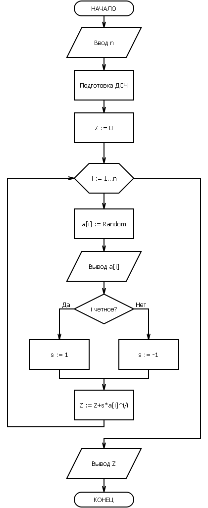 Составить блок-схему алгоритма и программу на алгоритмическом языке. Язык Паскаль с функцией возведения в степень power()...