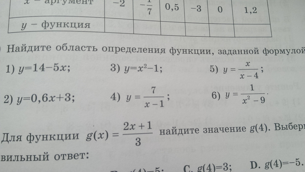 4) у = 7/(х - 1); т.к. х - 1 ≠ 0, то область определения: (-∞; 1) ∪ (1; + ∞);