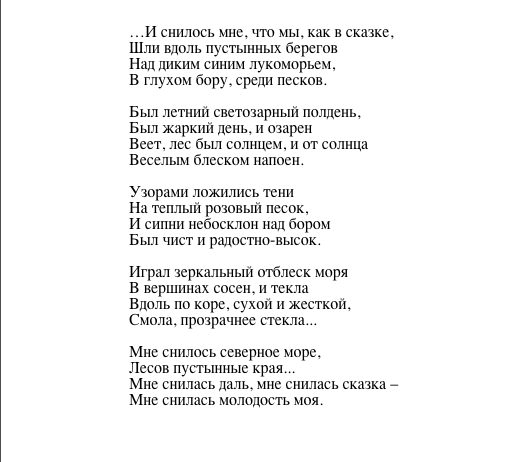 И снилось мне,что,мы как в скажке,шли в доль пустынных берегов над диким синим лукоморьем,в глухом бору,среди песков