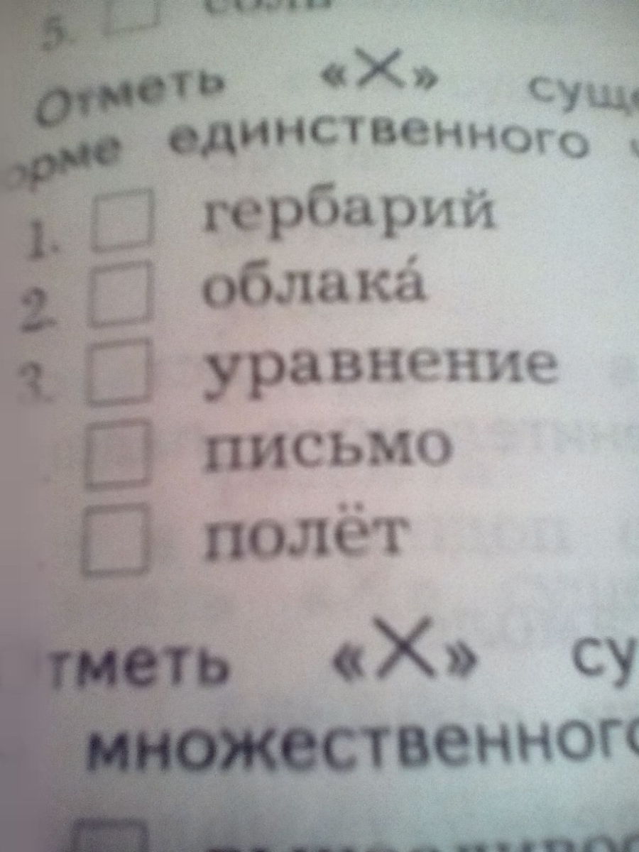 Отметь "×" существительные среднего рода в форме единственного числа.