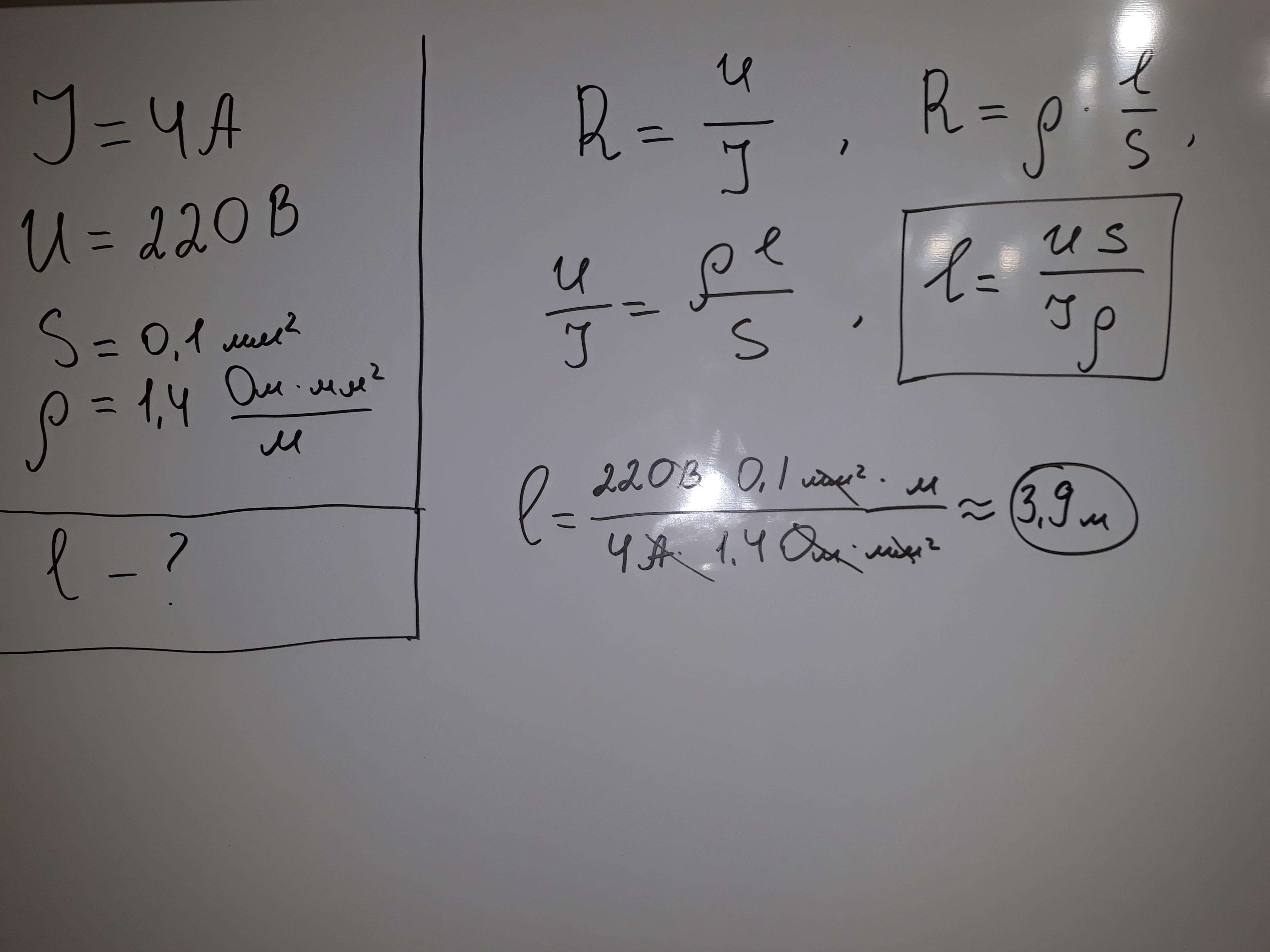 Сила тока в спирали электрокипятильника 4 А, который включен в сеть напряжением 220 В. Какова длина проволоки , пошедшей на изготовление спирали кипятильника , если он изготовлен из нихрома сечением 0,1?