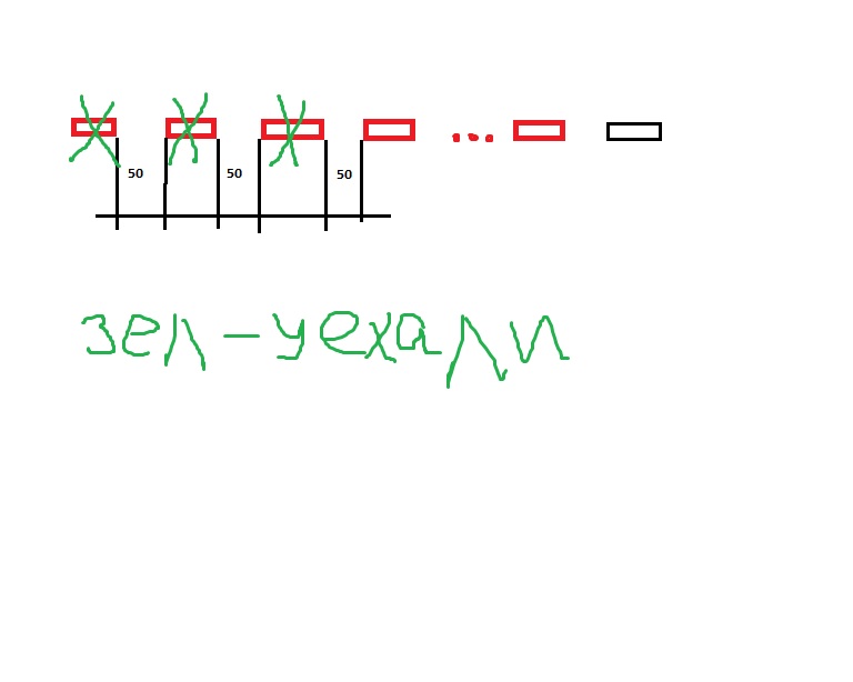 всё же понятно, или я что-то не понимаю колонна уменьшится на 150 м т.к. 3*50=150 (если не брать в учёт размер танка). схема на картинке.
