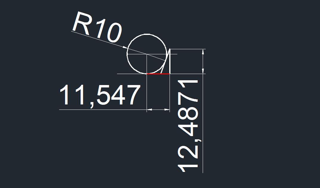 Для примера приводится чертёж с разрезом по оси шара радиусом 10 и углом Ф=20°.