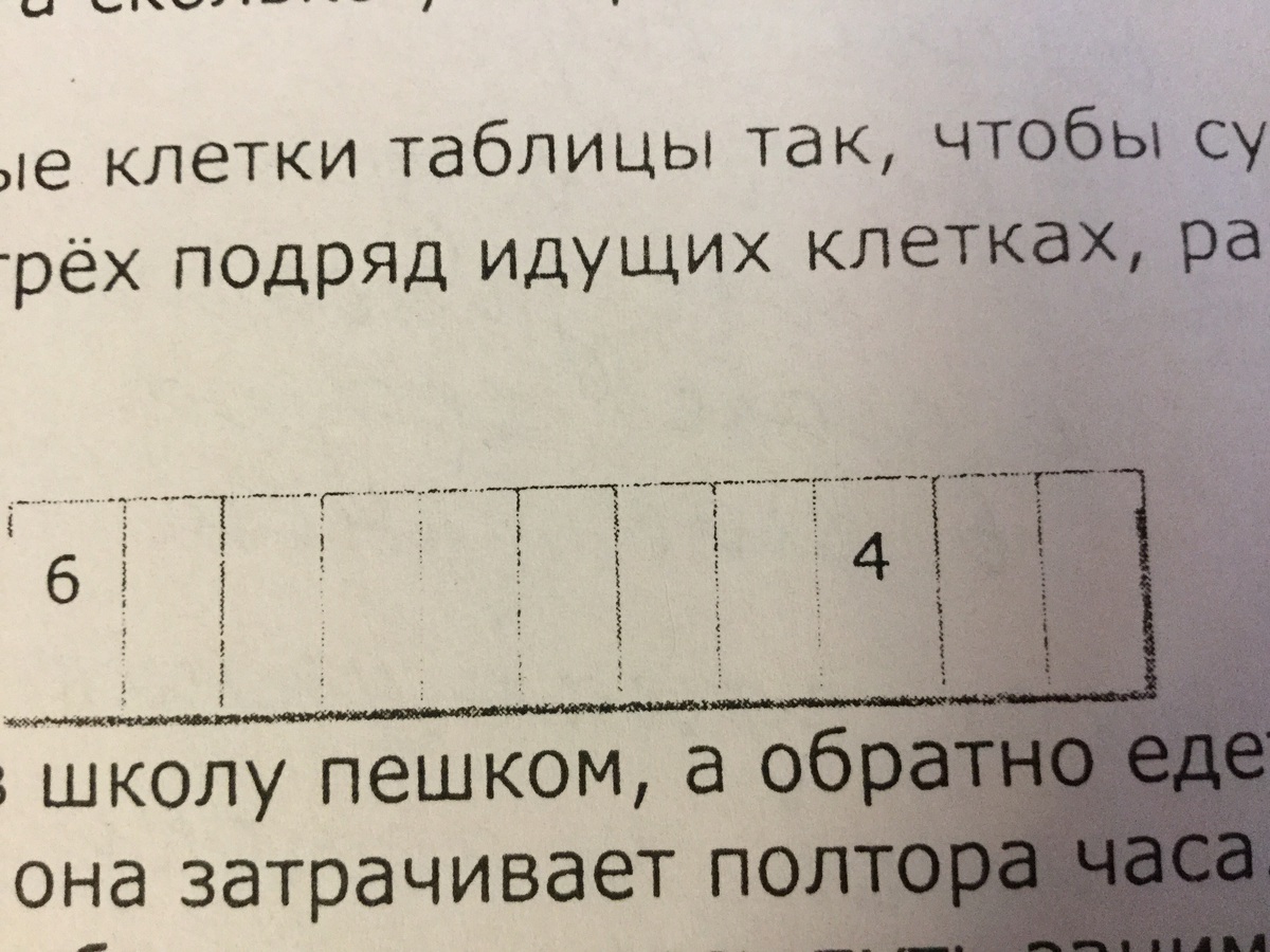Заполните пустые клетки таблицы так, чтобы сумма чисел, стоящих в любых трёх подрят идущих клетках, равнялась пятнадцати