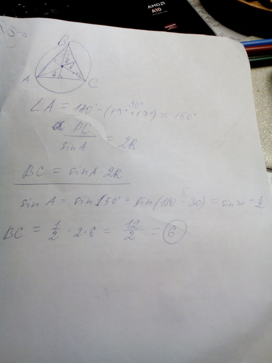 Углы А и В треугольника АВС равны соответственно 13 и 17 градусов. Найти сторону ВС, если радиус описанной окружности равен 6