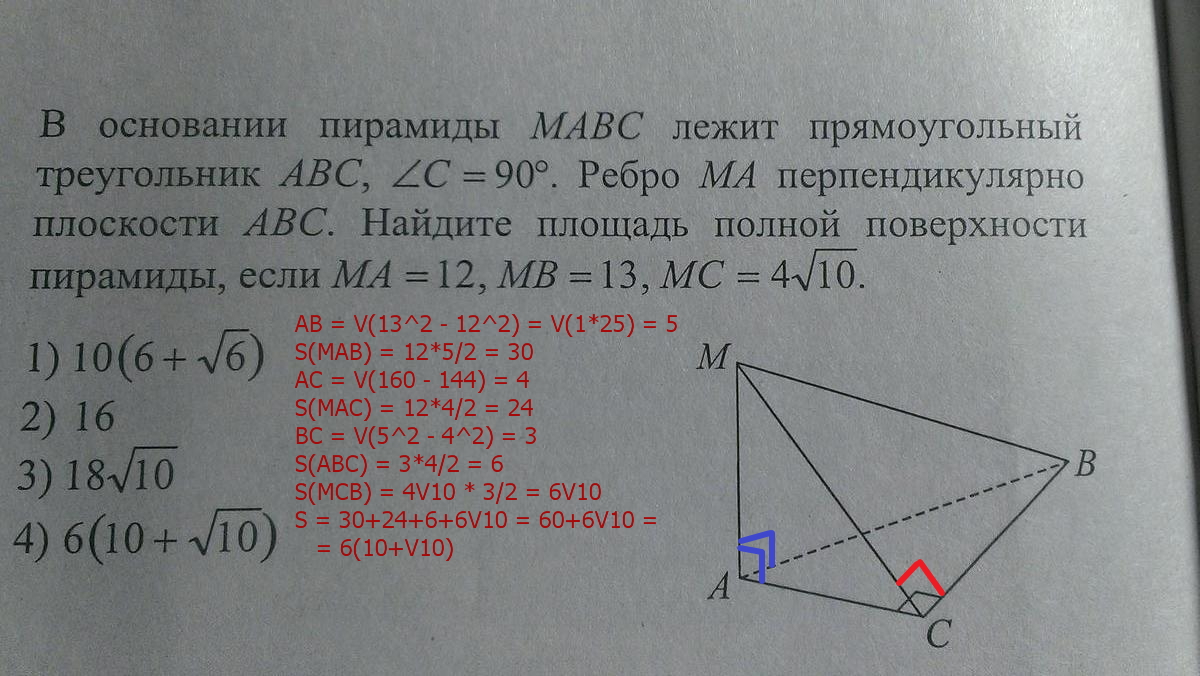 SΔMCB=(1/2)*MC*CB=(1/2)*4√10*3=6√10