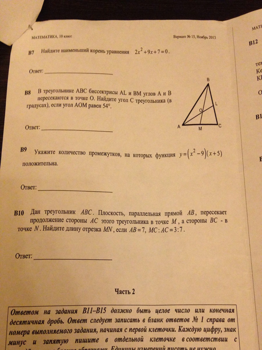 AL и BM - биссектрисы. Значит угол A = 2x град., угол B = 2*(54-x) = 108-2x град.
