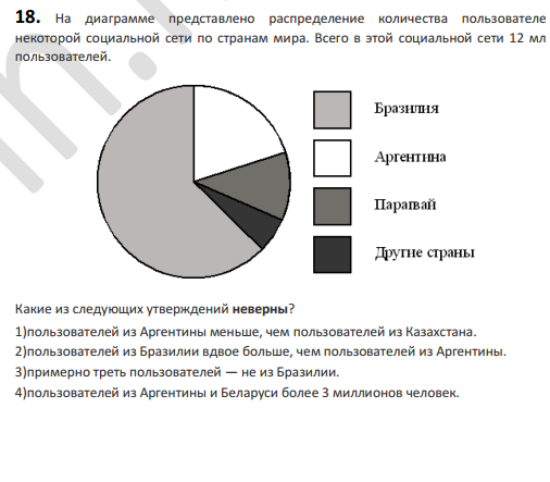 Ответ - 1. Т.к. Казахстан входит в область "Другие страны", которая намного меньше области пользователей Аргентины на диаграмме.