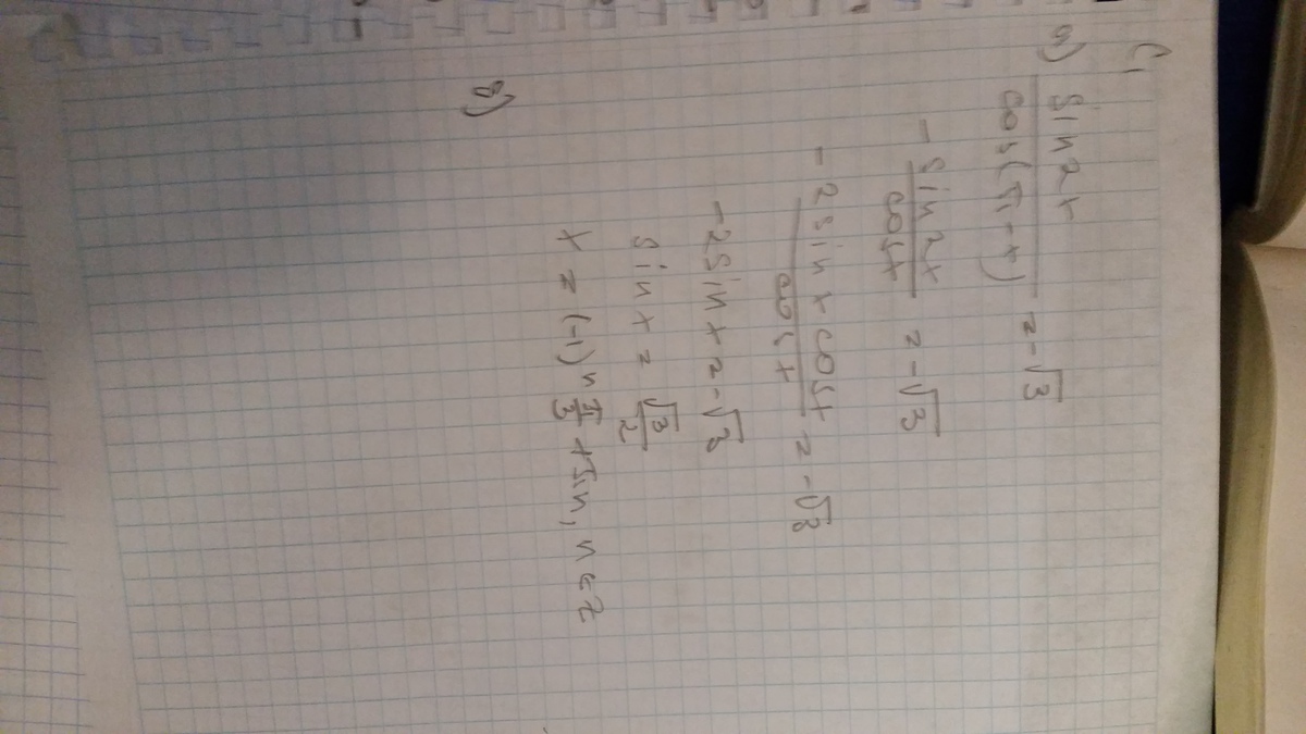 sin2x/cos( п-x)=-корень из 3 мне нужно отобрать корни [-9п/4;-3п/4]. все остальное я решила
