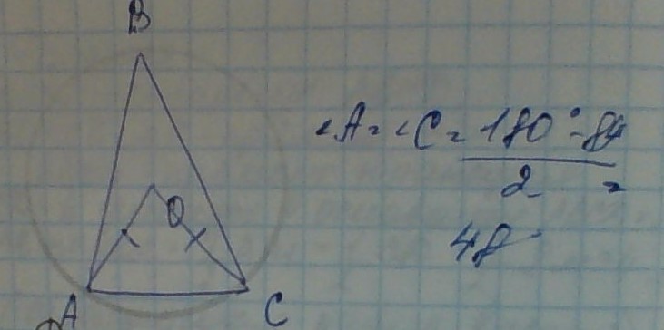 Вписанный угол ABC=42 градусам. Найти углы треугольника AOC.(О-ЦЕНТР ОКРУЖНОСТИ)
