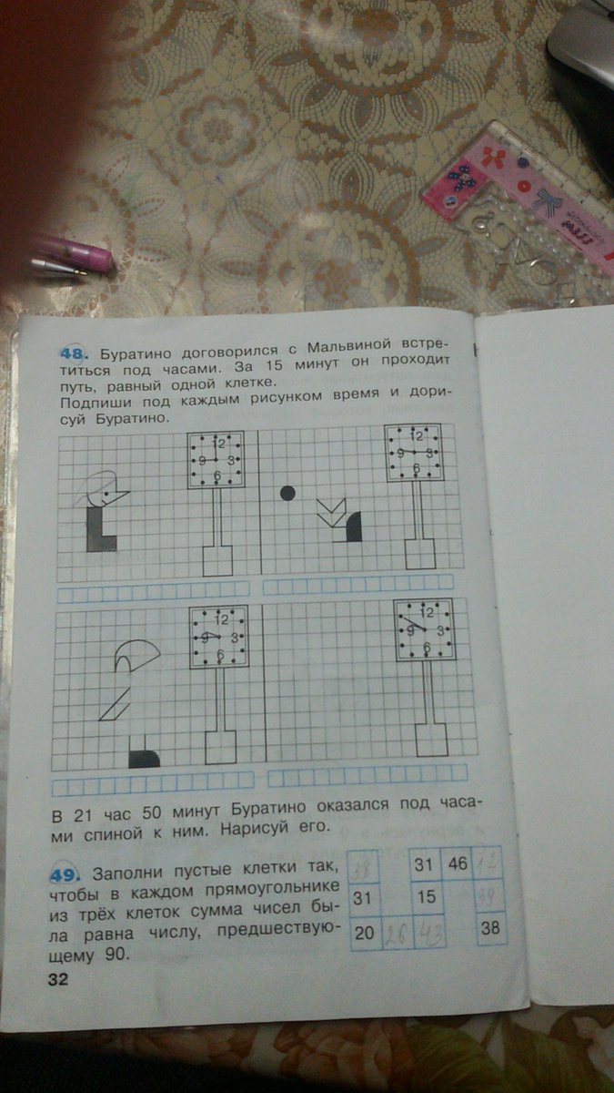 в 21ч 50 мин буратино оказался под часами спиной к ним нарисуй его