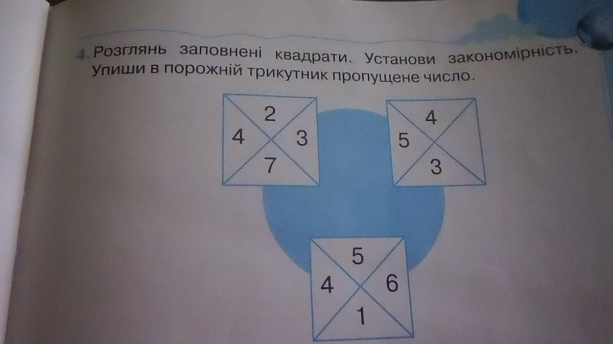 Второе: в каждом квадрате выходит число 16, значит в третьем нужно написать 4