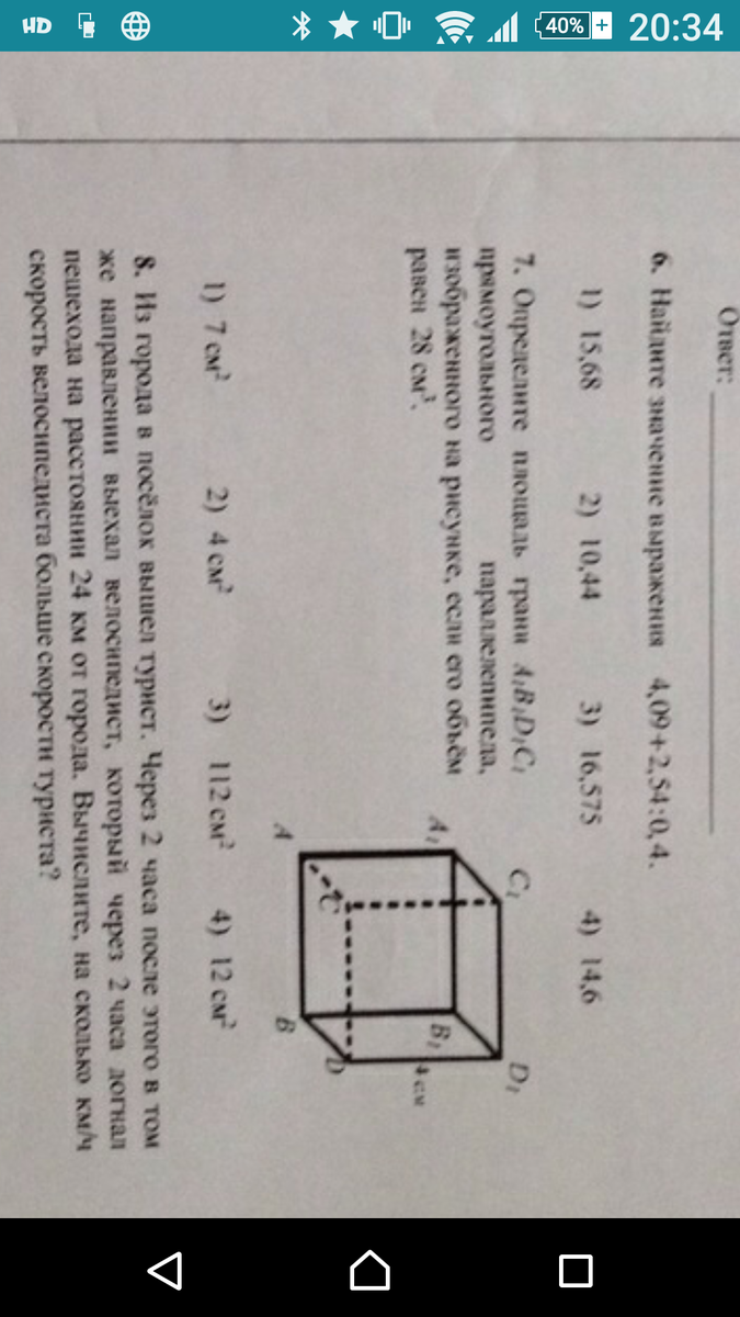 28 см^3 / 4 см = 7 см^2