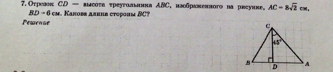 треугольник BDC - прямоугольный (угол BDC = 90 градусов)
