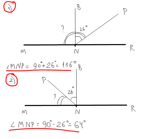 Из вершины развернутого угла MNR проведены его биссектриса NB и луч NP так, что ВNP = 26. Какой может быть градусная мера угла MNP ?