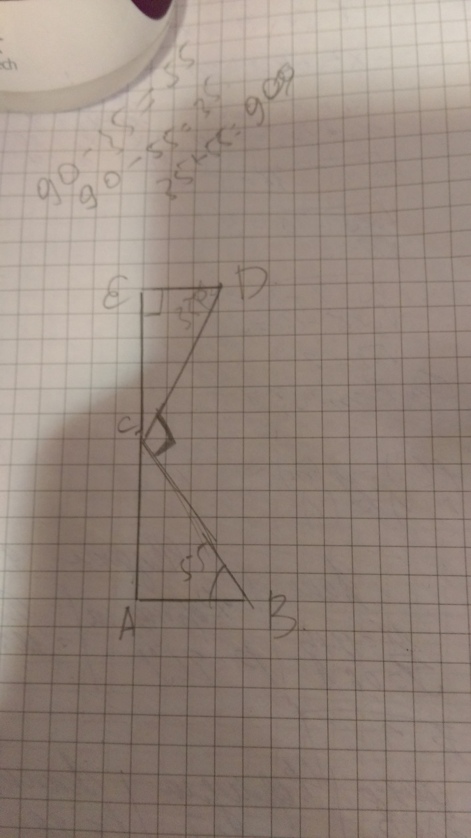 2. Угл BAC=DEC=90 гадусов, угл ABC=55 градусам, угл CDE=35 градусам.
