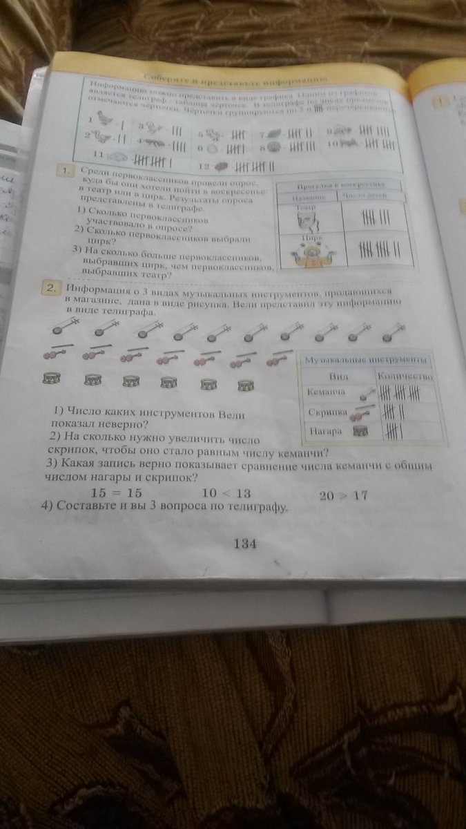информация о трех видов музыкальных инструментов, продающихся в магазине, дана Вели представил эту информацию в виде телиграфа .1)Число каких инструментов Вели пакащал неверно. ? 2)На сколько нудно увеличить число скрипок чтобы оно стало равным числу кеманчи? 3)Какая запись верно паказывает сравнение числа кеманчи с оющим числом нагары и скрипок? 4)составьти и вы 3 вопроса по телеграфу