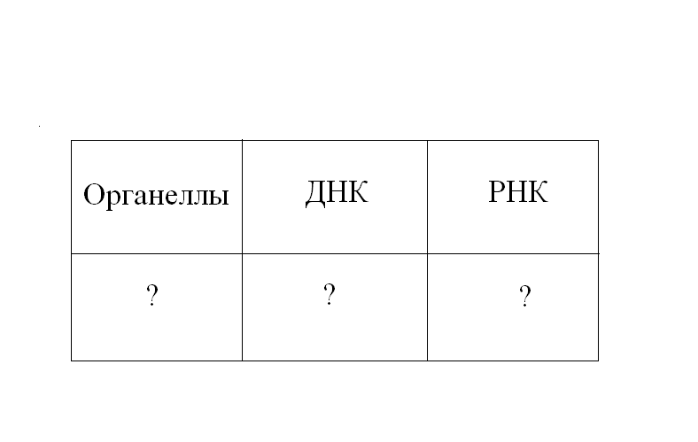 Укажите, в каких органоидах цитоплазмы встречаются нуклеиновые кислоты (по таблице)