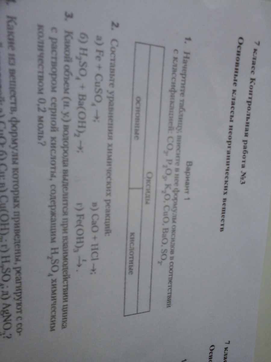 Основные оксиды K2O, CuO, BaO