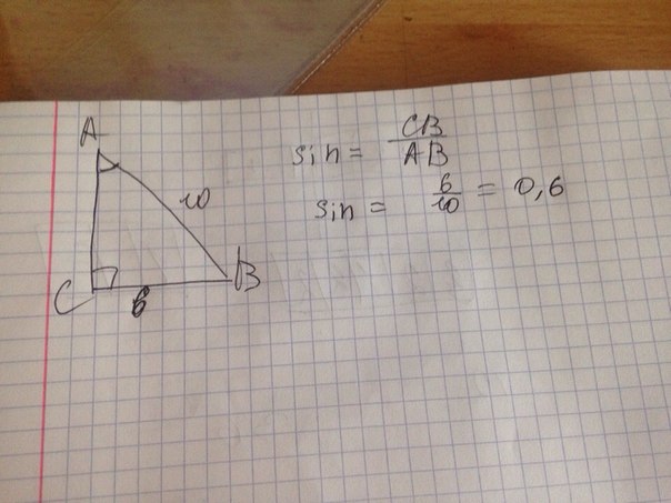 В треугольнике АВС известно что угол С=90°,ВС=6 см,АВ=10см.Чему равен sinA