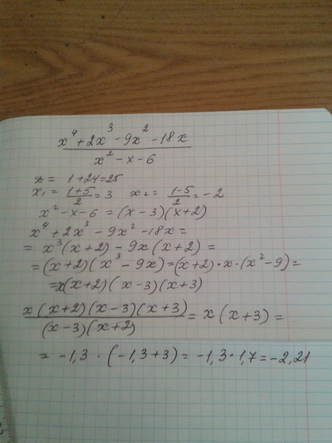 x^4+2x^3-9x^2-18x/x^2-x-6, при x=-1,3