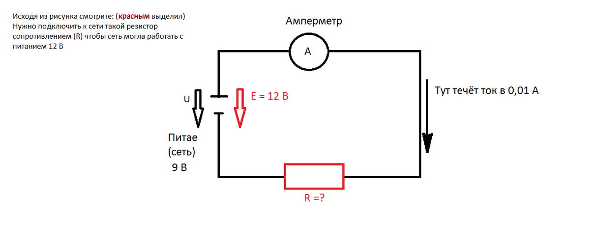 2. Для работы небольшого электрического прибора R необходимо напряжение 9 V и сила тока 10 mA. С каким сопротивлением резистор нужно включить последовательно с амперметром, чтобы в цепи можно было бы использовать источник тока с ЭДС 12 V?