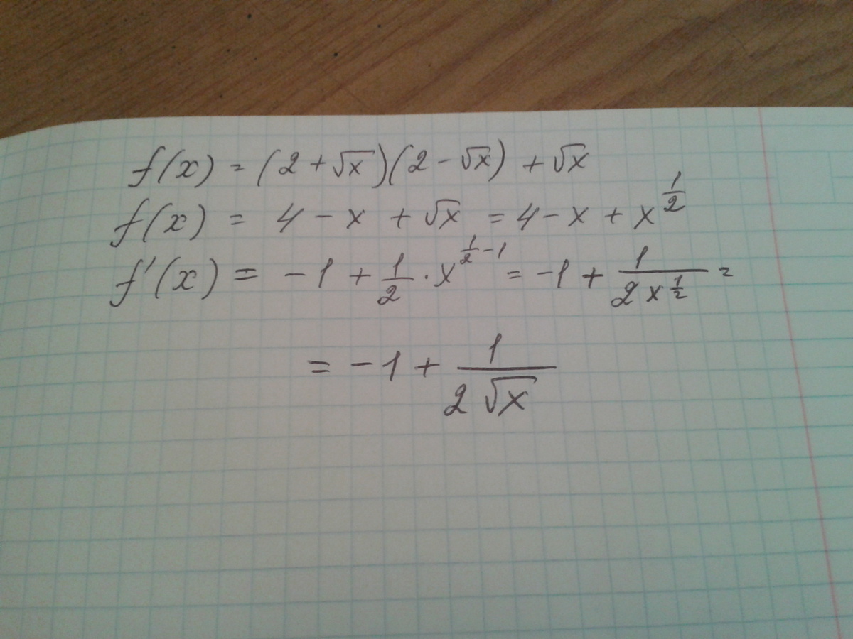 f(x)=(2+кореньX)(2-кореньX)+кореньX