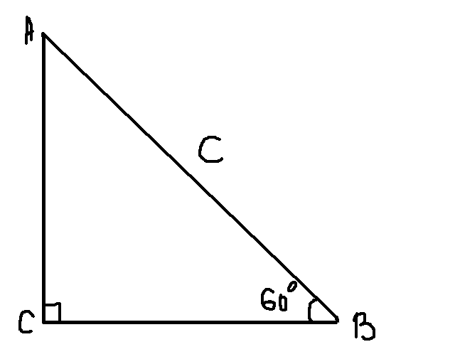 в прямоугольном треугольнике с гипотенузой с и углом 60 градусов найдите катет, противолежащий этому углу.