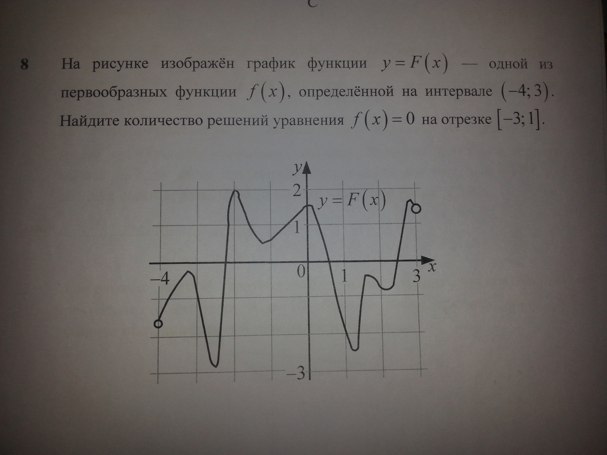 Производная функции любой функции, отличной от константы, равна 0 в точках экстремума. f(x) являетя производной для F(x). F(x) на [-3, 1] имеет 3 экстремальные точки. Значит, f(x) имеет три различных корня на этом отрезке.