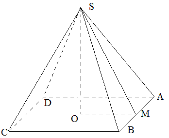 В основании нашей пирамиды лежит квадрат. Исходя из свойств правильной пирамиды знаем, что ОМ это половина стороны основания пирамиды. Тогда,