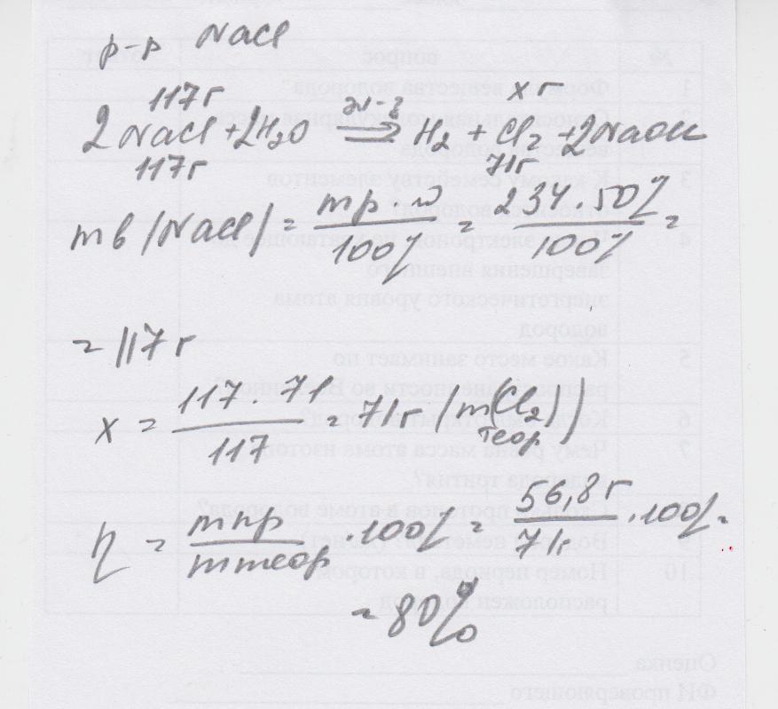 При электролизе 234 г 50% раствора хлорида натрия на аноде получено 56,8 г газа. Выход газа составляет