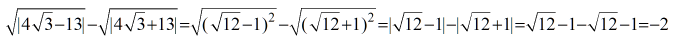 найдите целое число равное разности √|4√3-13|-√|4√3+13|