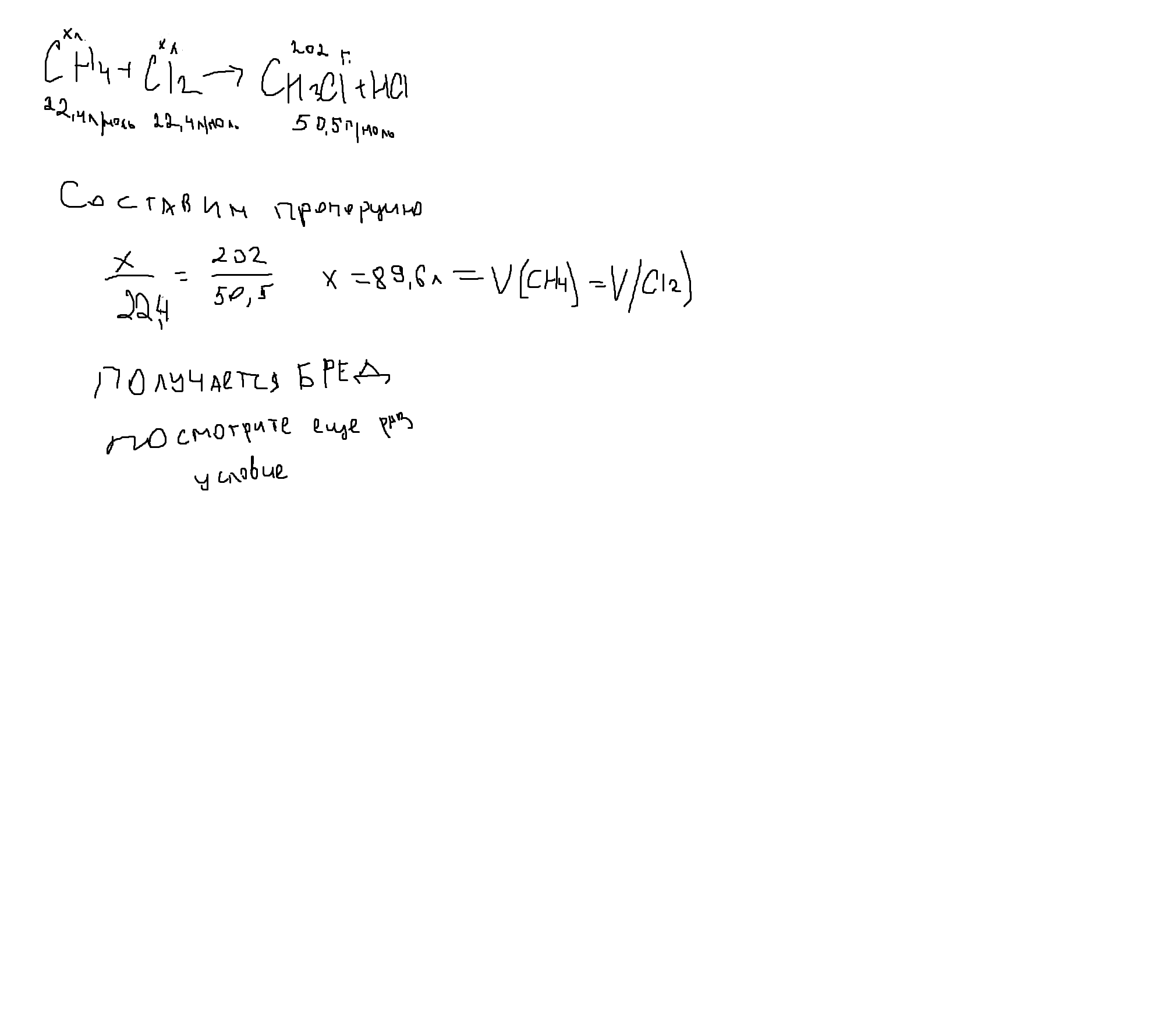объемы CH4 и Cl2 которые израсходуется для получения 202 грамм хлорметана