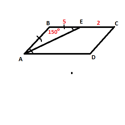 бессектрисса угла А параллелограмма АВСД пересекает его сторону ВС в точке Е. найдите площадь параллелограмма АВСД если ВЕ=5, ЕС=2,угол АВС =150