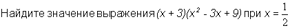 Найдите значение выражения: (x+3)(x^2-3x+9) при x=1/2