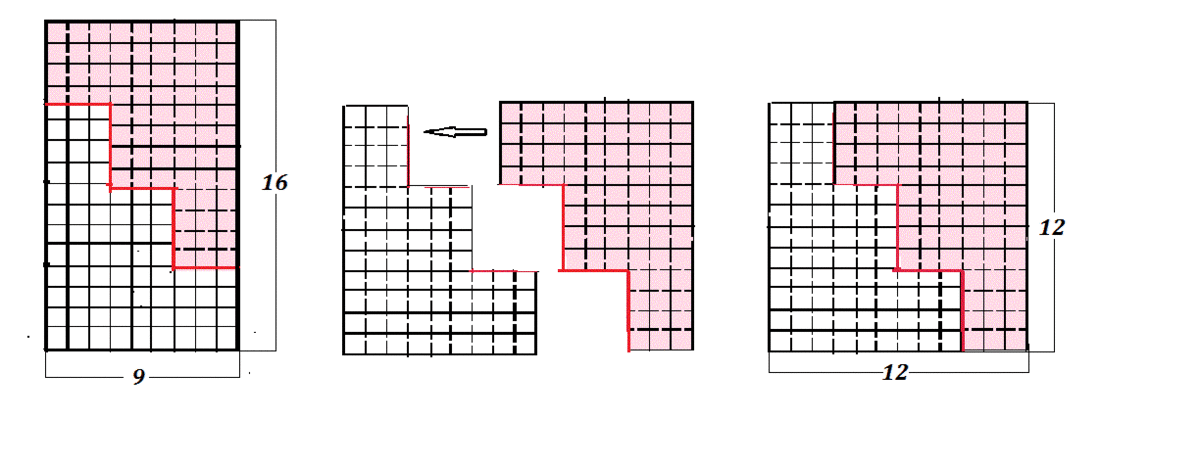 как разрезать прямоугольник длина которого равна 16 см а ширина 9 см на 2 разные части из из которого можно составить квадрат
