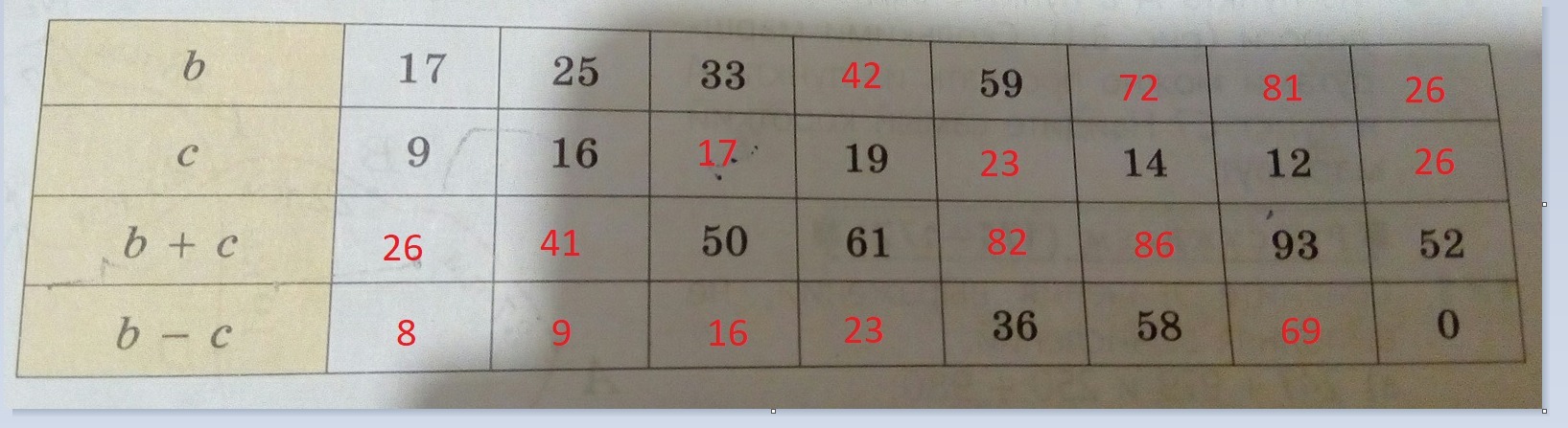 Заполните таблицу : B 17 25 33 [ ] 59 [ ] [ ] [ ] C 9 16 [ ] 19 [ ] 14 12 [ ] b c [ ] [ ] 50 61 [ ] 93 52 b-c [ ] [ ] [ ] [ ] 36 56 [ ] 0