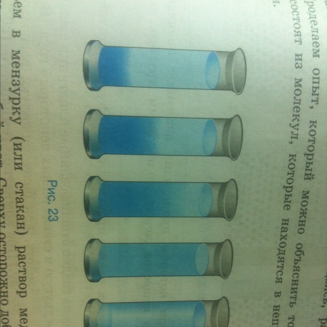 Пользуясь рисунком 23,объясните процесс протекания диффузии в жидкостях