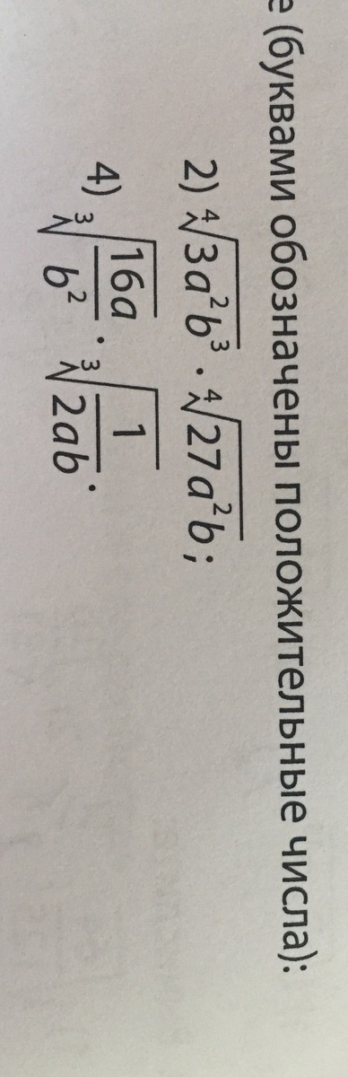 ⁴√ 3а²в³ * ⁴√ 27а²в = ⁴√ (3а²в³*27а²в) = 3 ⁴√ а³в³ = 3ав