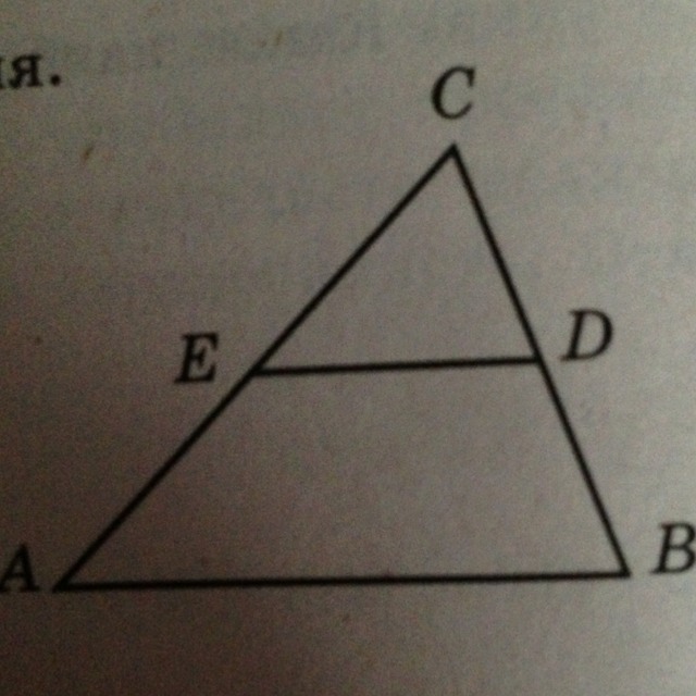 Площадь треугольника ABC равна 16. DE-средняя линия. Найдите площадь трапеции ABDE.