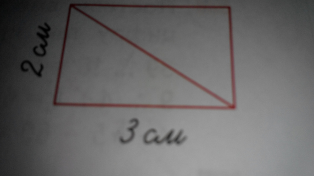 прямоугольник со сторонами 2см и 3см делиться деогональю на два одинаковых прямоугольных треугольника.Найди площадь каждого из них.