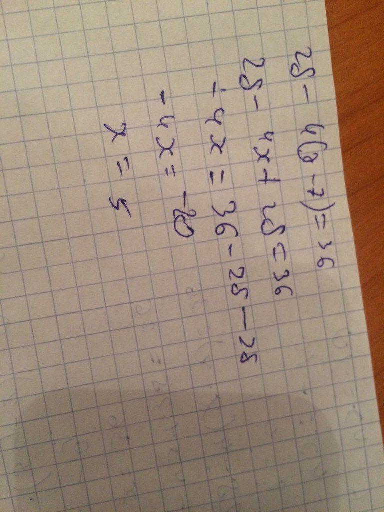 2.Найдите корень уравнения : 28-4(х-7)=36