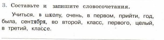составьте и запишите словосочетания.Учиться,в школу, очень, в первом, прийти ,была,год,сентября,во второй,класс,первого,целый,во второй,классе.