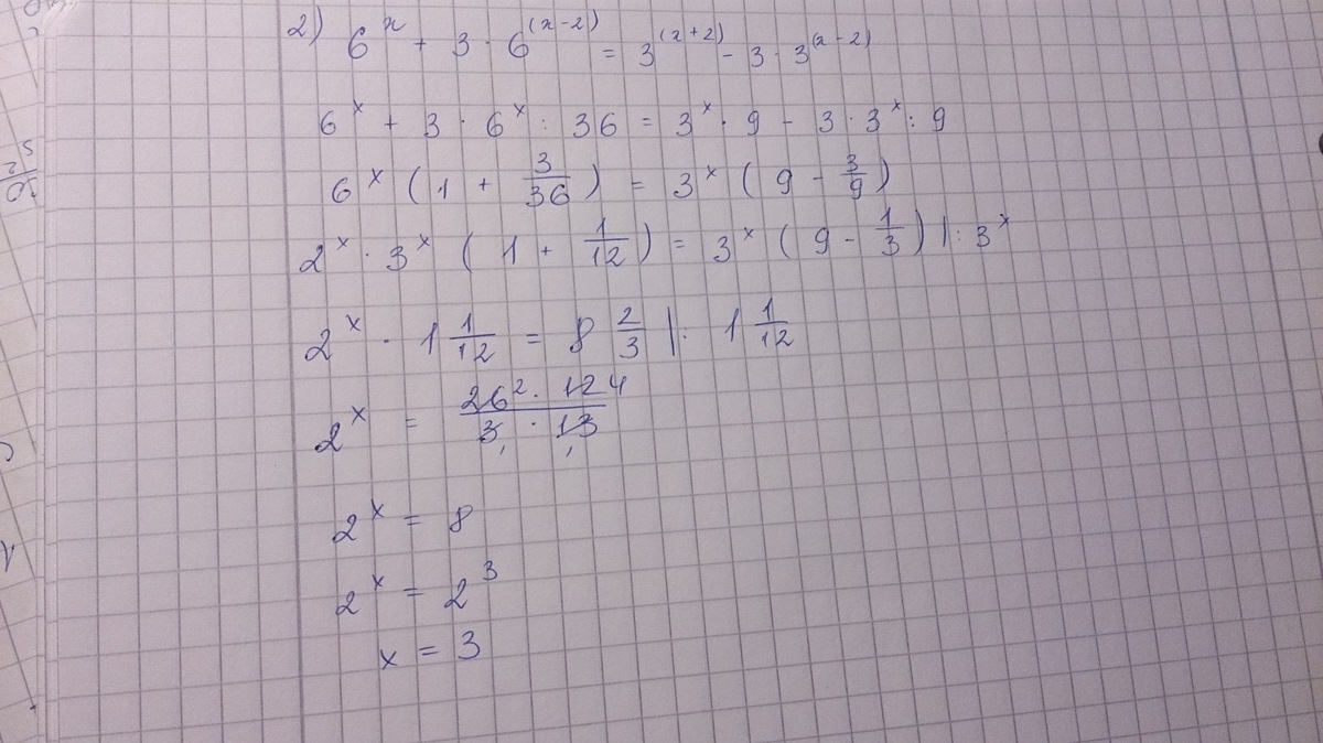 2)6^x +3*6^(x-2)=3^(x+2)-3*3^(x-2)