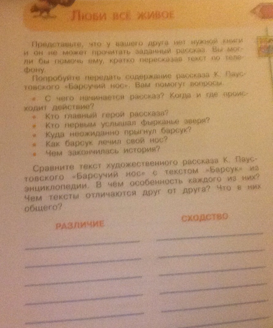 Сравните текст художественного рассказа К.Паустовского "Барсучий Нос" с текстом "барсук" из энциклопедии.В чем особенность каждого из них?Чем тексты отличаются друг от друга?что в них общего?